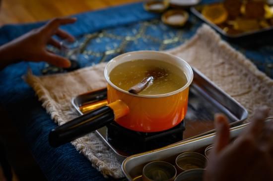 館で育てられたホーリーバジルを漬けた蜂蜜を使用しています。